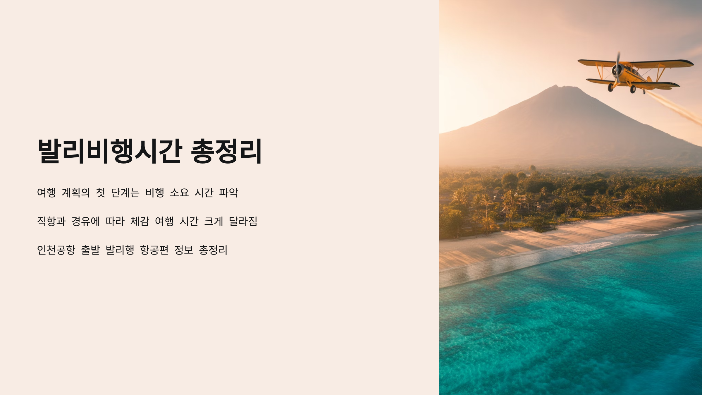 발리비행시간이 궁금하신가요? 여행 계획을 세우는 첫 단계는 비행 소요 시간을 정확히 아는 일입니다. 특히 직항과 경유에 따라 체감 여행 시간이 크게 달라지기 때문에, 항공편별 소요 시간과 특징을 비교해보는 것이 매우 중요합니다.