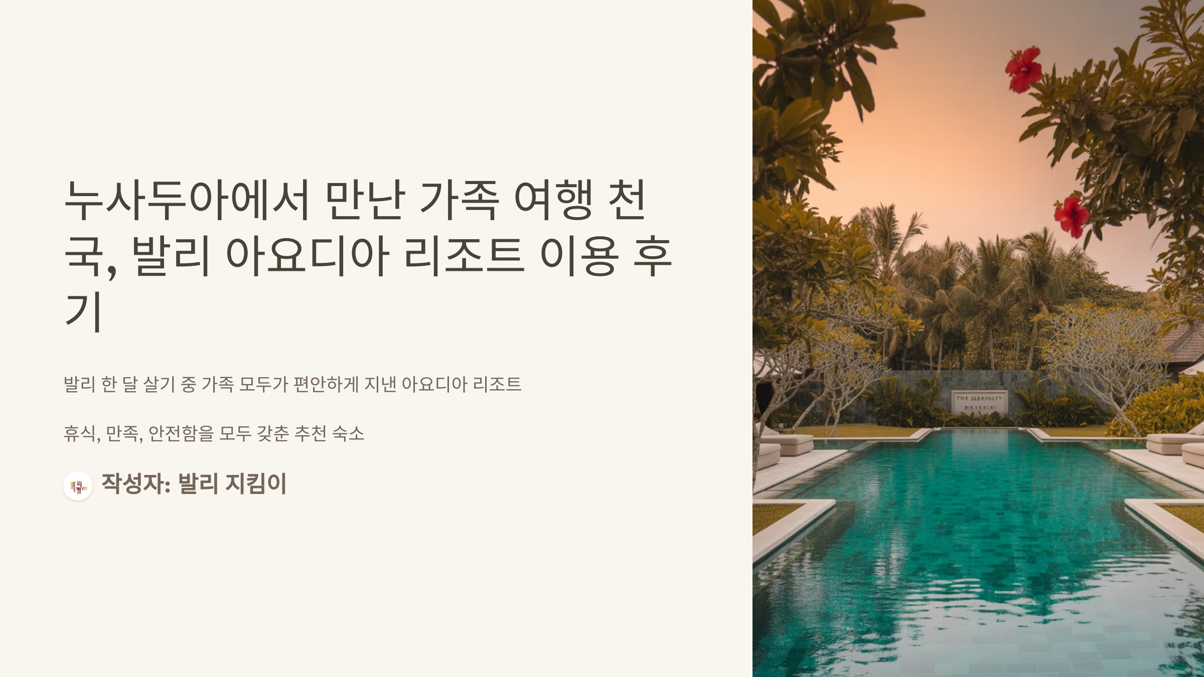 발리에서 한 달 살기를 하며 다양한 지역을 경험했지만, 가족 모두가 편안하게 지낼 수 있었던 곳은 단연 누사두아에 위치한 아요디아 리조트였습니다. 휴식과 만족, 그리고 안전함까지 갖춘 이 숙소는 발리를 찾는 이들에게 꼭 한 번쯤 추천하고 싶은 공간이에요.